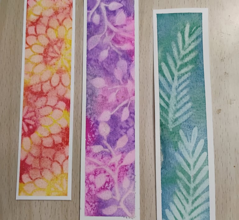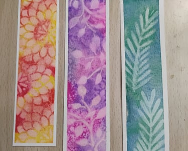 Most of these are smallish, 4x5, some are a bit smaller. I'm thinking they'd make great cards or just small artworks. Some below are bookmarks.