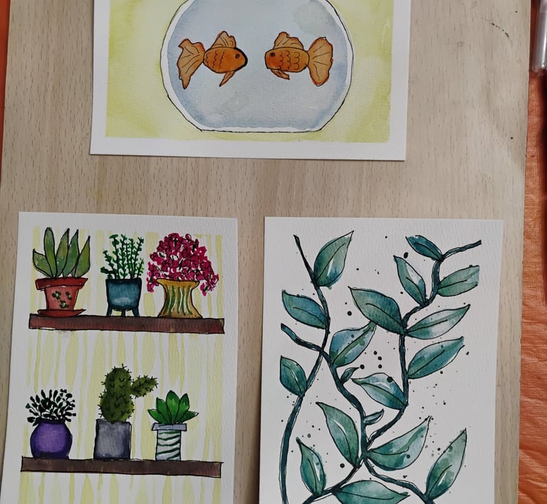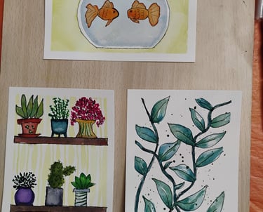 I started this site as a way to hopefully help bring in some money as I continue to look for remote work, since I can't get out to do shows anymore. I have been unable to set up my jewelry studio in my house due to my chronic illnesses, eventually I'll find a way to do that but we are just not there yet. I still have a lot of pieces that I made and will eventually get more of them up on the site. So I've been exploring other avenues of creativity. I am immensely enjoying learning watercolor, so that is what I've been doing this year!